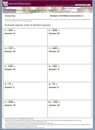 Use square root and cube root symbols to represent solutions to equations of the form x² = p and x³ = p, where p is a positive rational number. 8 ee 2 worksheets 6. This file contains 10 worksheets and keys.
