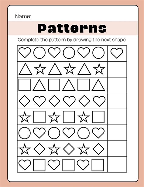 Web the picture patterns worksheets below come in a number of themes and include various configurations of shape, size and rotation attributes. Worksheets are student workbook working on growing visual patt. Web patterns worksheets help students deal with various patterns like identifying the next picture, color, size, and shape, increasing and decreasing number patterns, writing the.