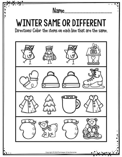 Free Printable Winter Same and Different Worksheets The Keeper of the from www.thekeeperofthememories.com