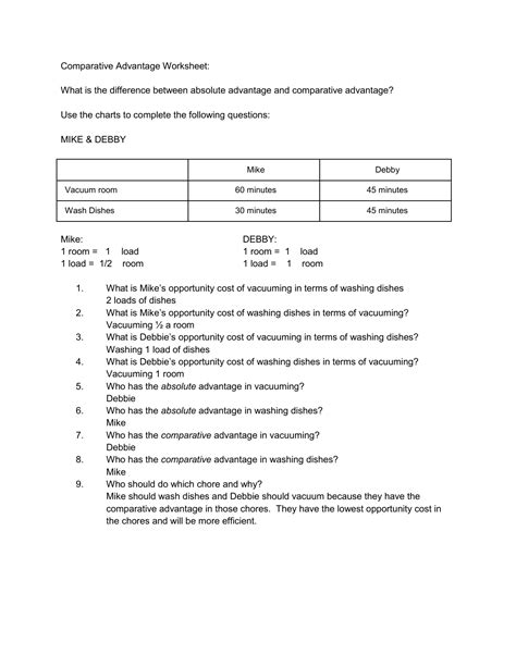 Web this assignment will give students practice in solving absolute and comparative advantage problems through calculating opportunity cost using charts and graphs (international. Make comparisons of the following. Comparative advantage worksheet practice beco.