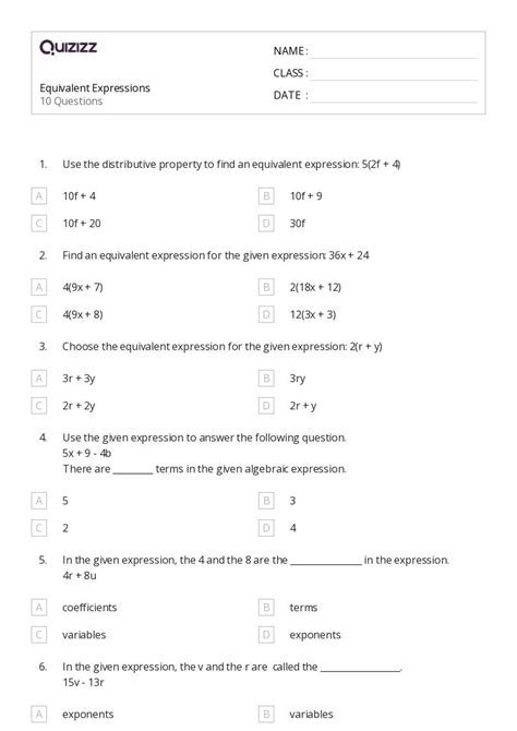Practice writing and evaluating equivalent expressions with these fun and relatable word problems! Web from words to expressions. Web algebraic expressions 7th grade worksheets are a good way to start learning about working with different types of algebraic expressions.